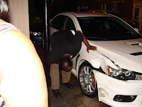 My emotions were all jumbled up, as my girlfriend screamed upon contact with the other vehicle, the last thing I would want to happen is for my being responsible for her injury. All in all, the damage isn't all that bad I'll require a new front bumper and fender and front right rim. On the positive side of things if you've ever owned a Mitsubishi you know how cheap the paint is, I'll have all those little chip marks blended out and made mint once the body shop finishes it's magic. Thanks to the officers that came to the scene that were really good guys that helped calm everyone down also, the tow truck drivers and Merrick Road Collision they do excellent work and came highly recommended. After dropping off my car, the owner took me in the back to see the Audi RS4, Porsche's and Mercedes he was currently working on to assure me that my car is in good hands. So, as of now I'm driving the beater and very happy that I came out of the situation unscathed because their are no body shops for people. So follow my blog and I'll update when my X is back on the road & you know I'll keep you posted on my next set of mods. Hint, Carbon fiber body kit ;)